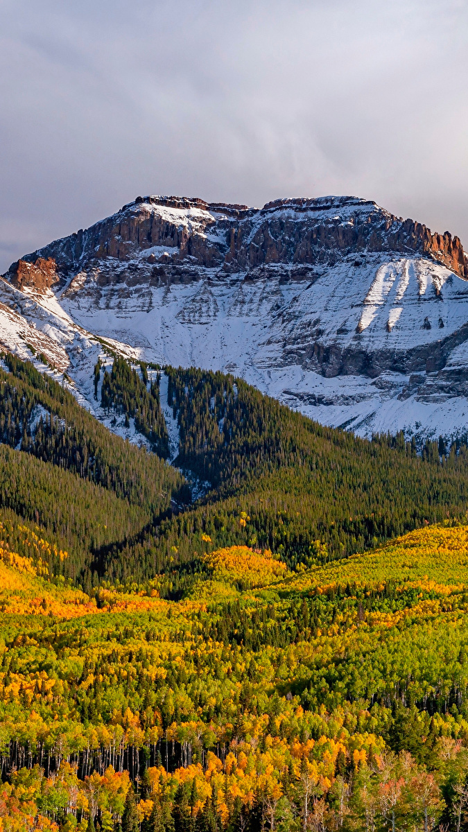 Edytor tapety: Jesienne lasy i ośnieżone góry
