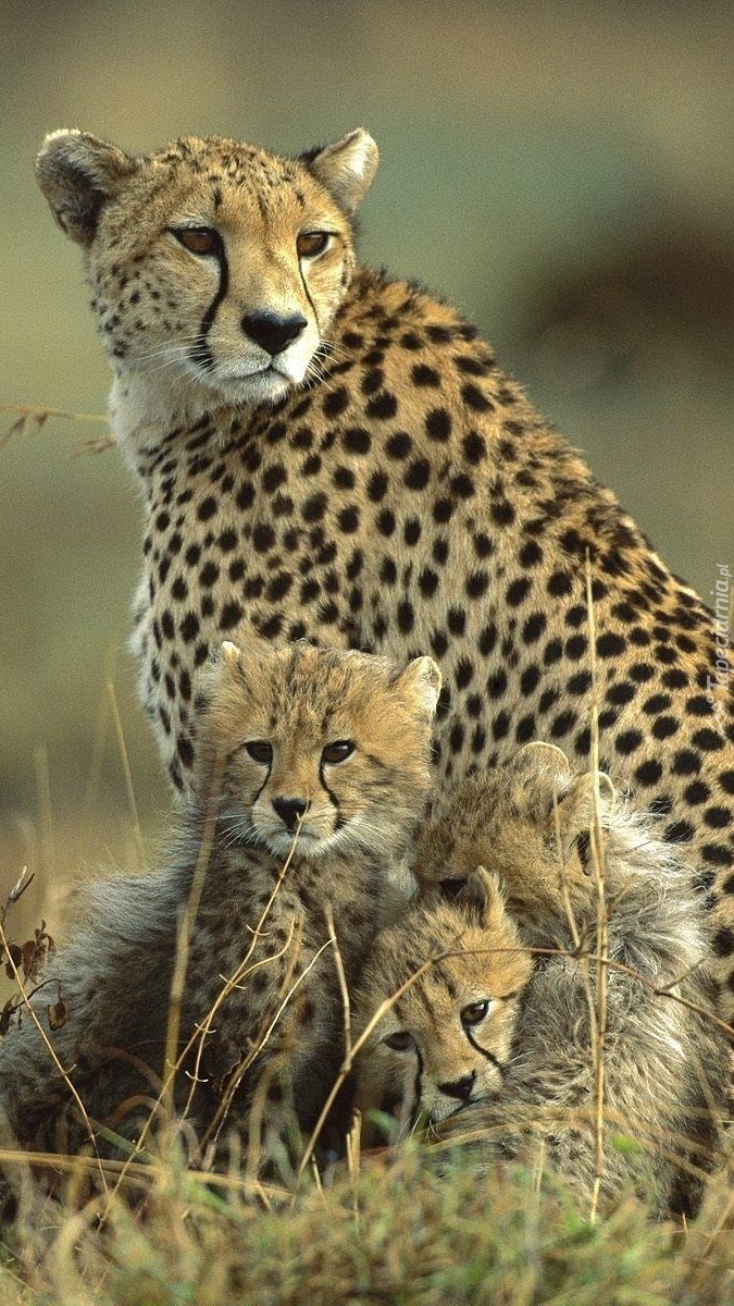 Edytor tapety: Małe gepardy z mamą