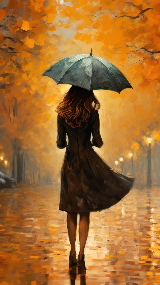 Edytor tapety: Kobieta pod parasolem na ulicy