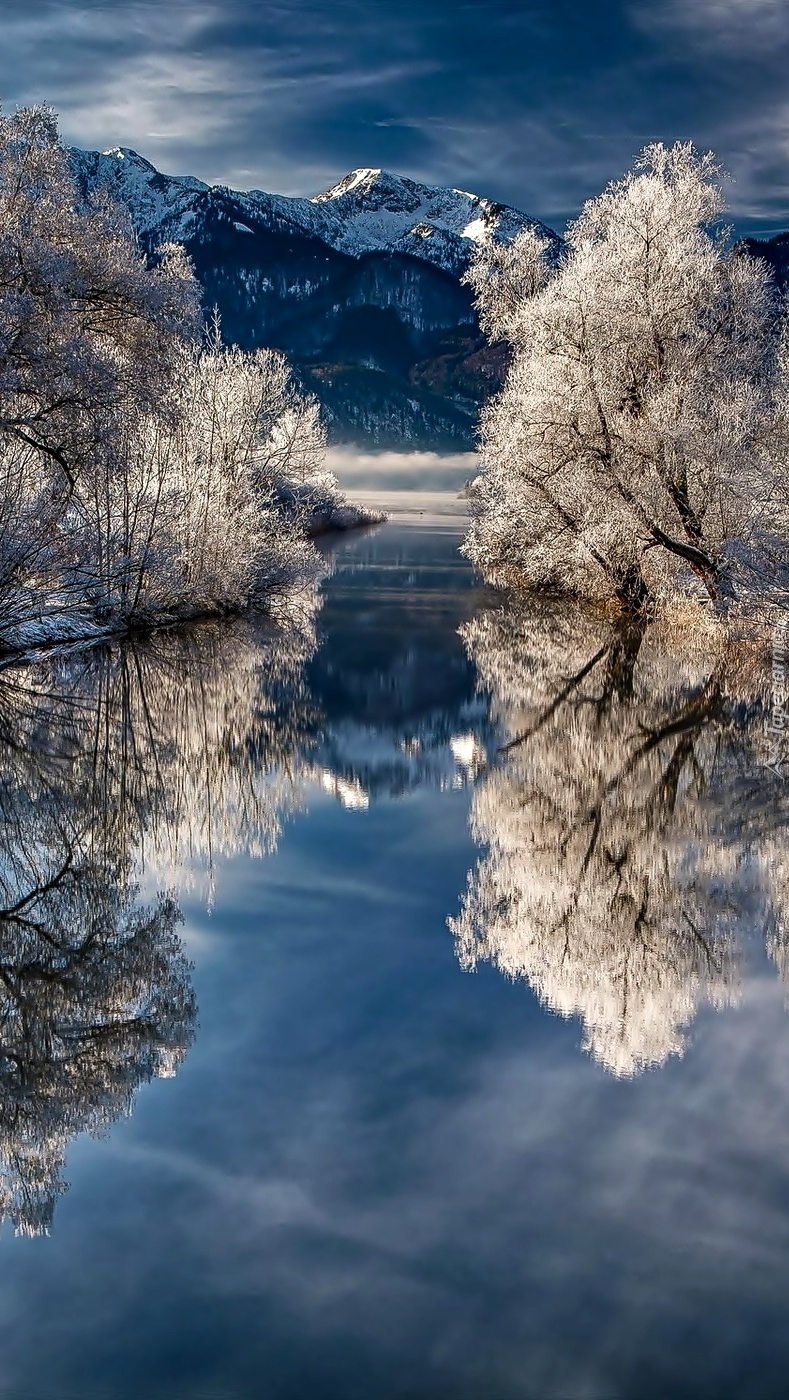 Edytor tapety: Odbicie oszronionych drzew