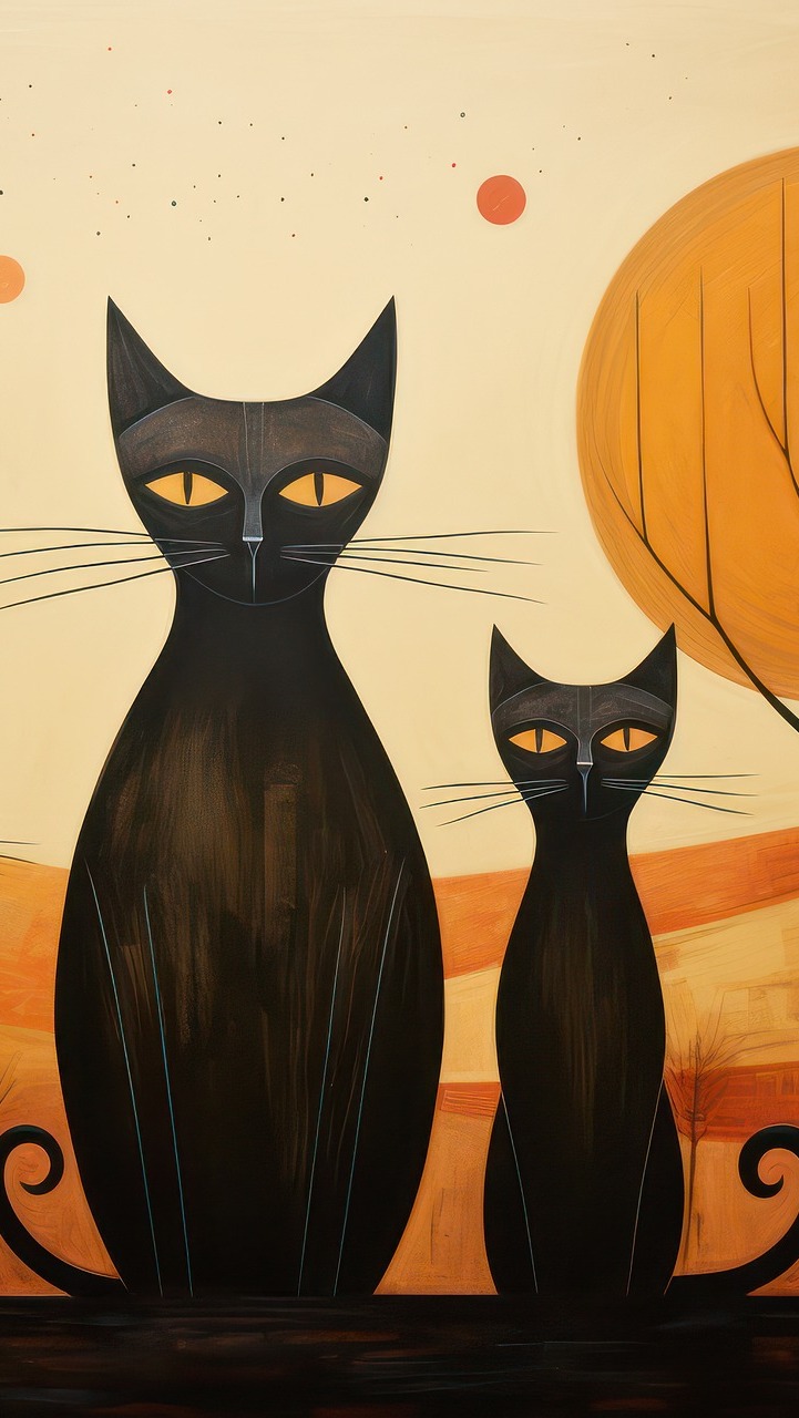 Edytor tapety: Dwa czarne koty w grafice