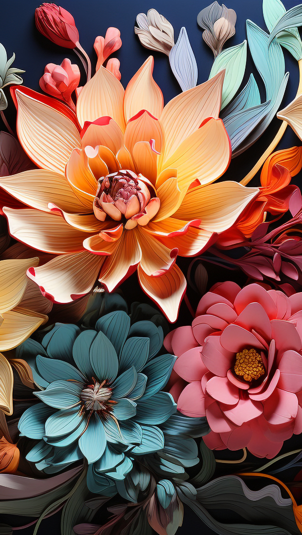 Edytor tapety: Rozświetlone kolorowe kwiaty w 2D