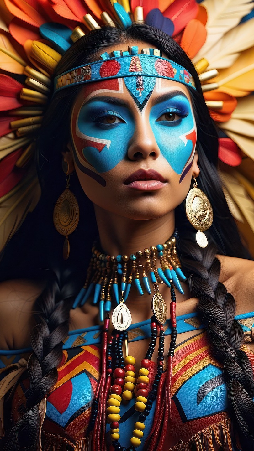 Edytor tapety: Indianka w pióropuszu z pomalowaną twarzą
