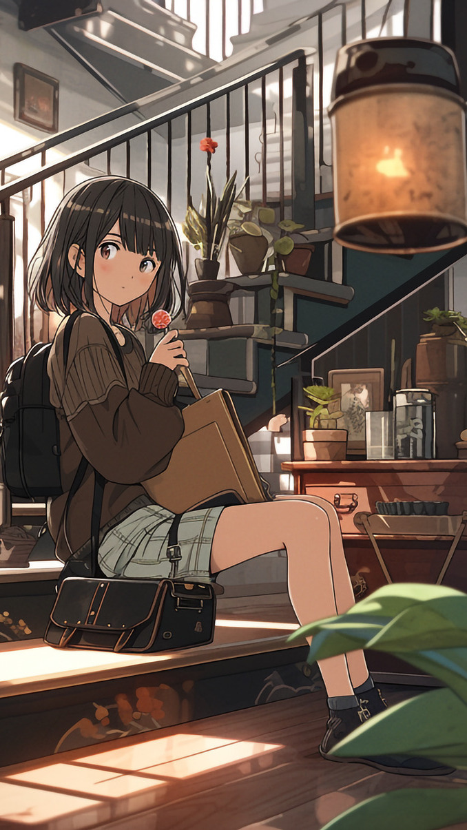 Edytor tapety: Dziewczyna siedząca na schodach