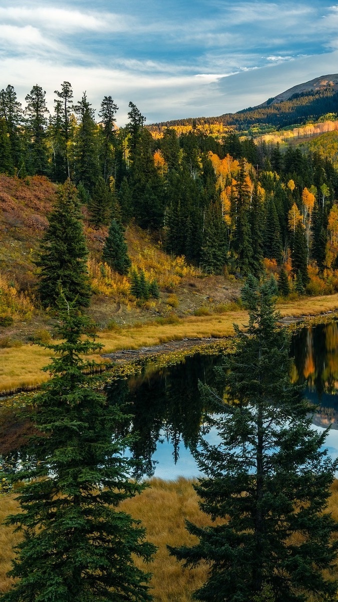 Edytor tapety: Las na wzgórzu nad jeziorem