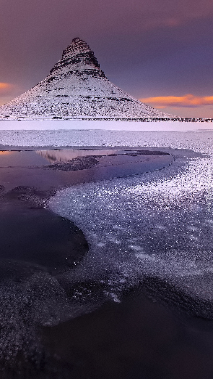 Edytor tapety: Góra Kirkjufell w Islandii zimą