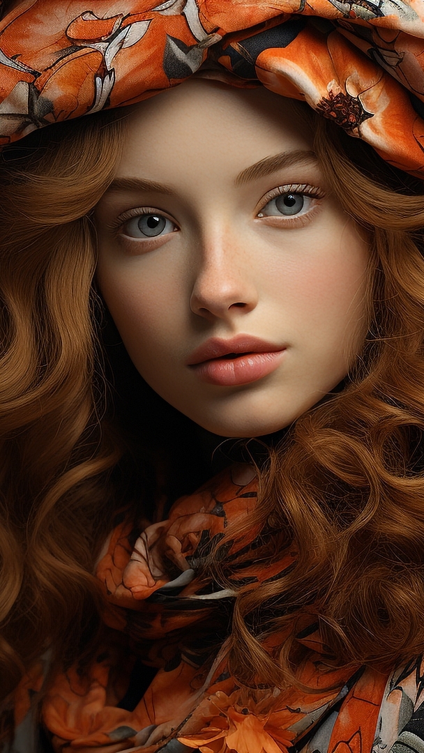 Edytor tapety: Rudowłosa kobieta w kapturze na głowie