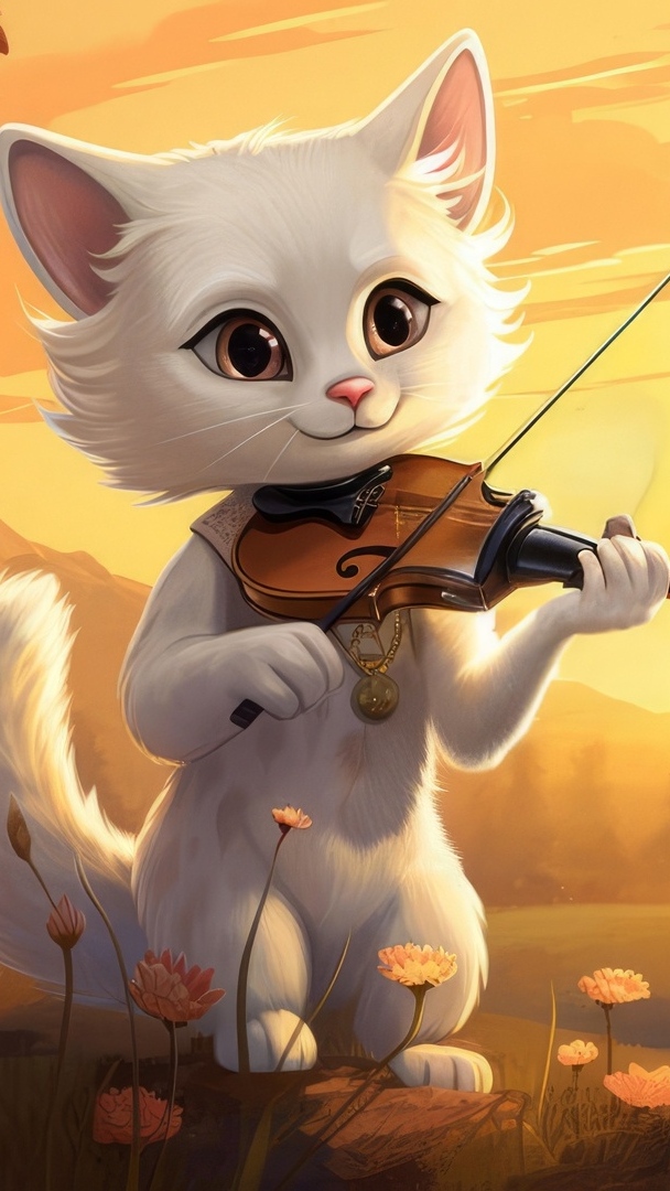 Edytor tapety: Biały kotek ze skrzypcami w grafice