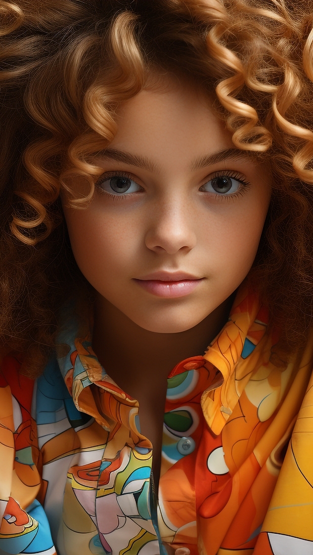Edytor tapety: Dziewczynka z kręconymi włosami i koszuli