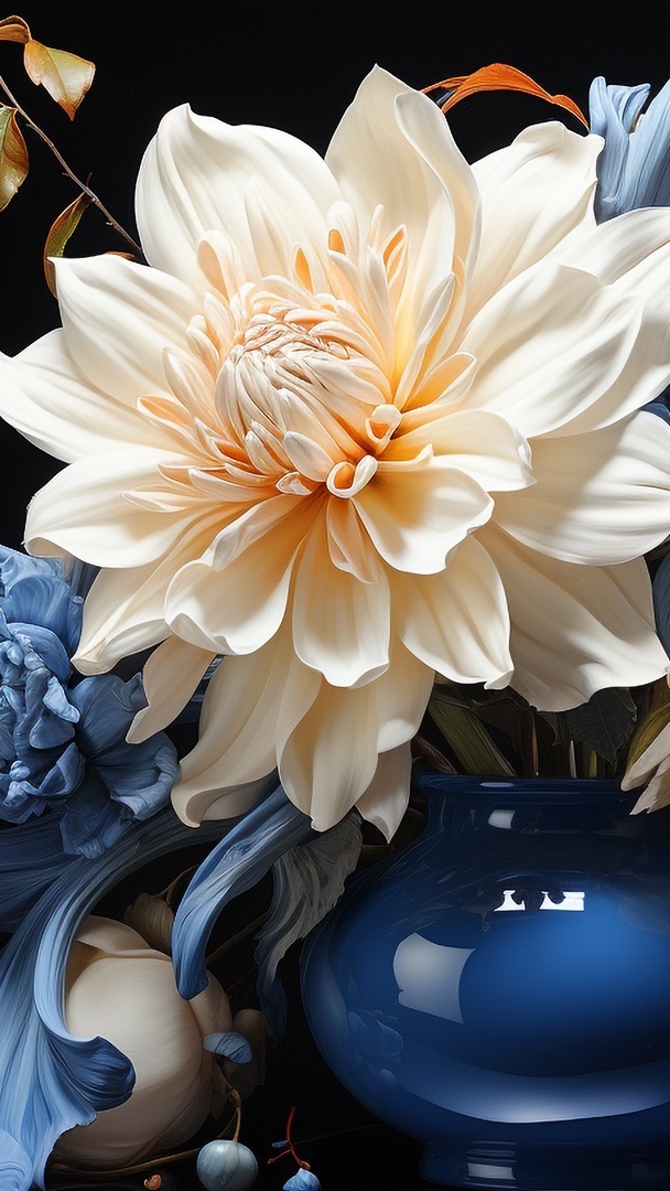 Edytor tapety: Kremowy kwiat w niebieskim wazonie