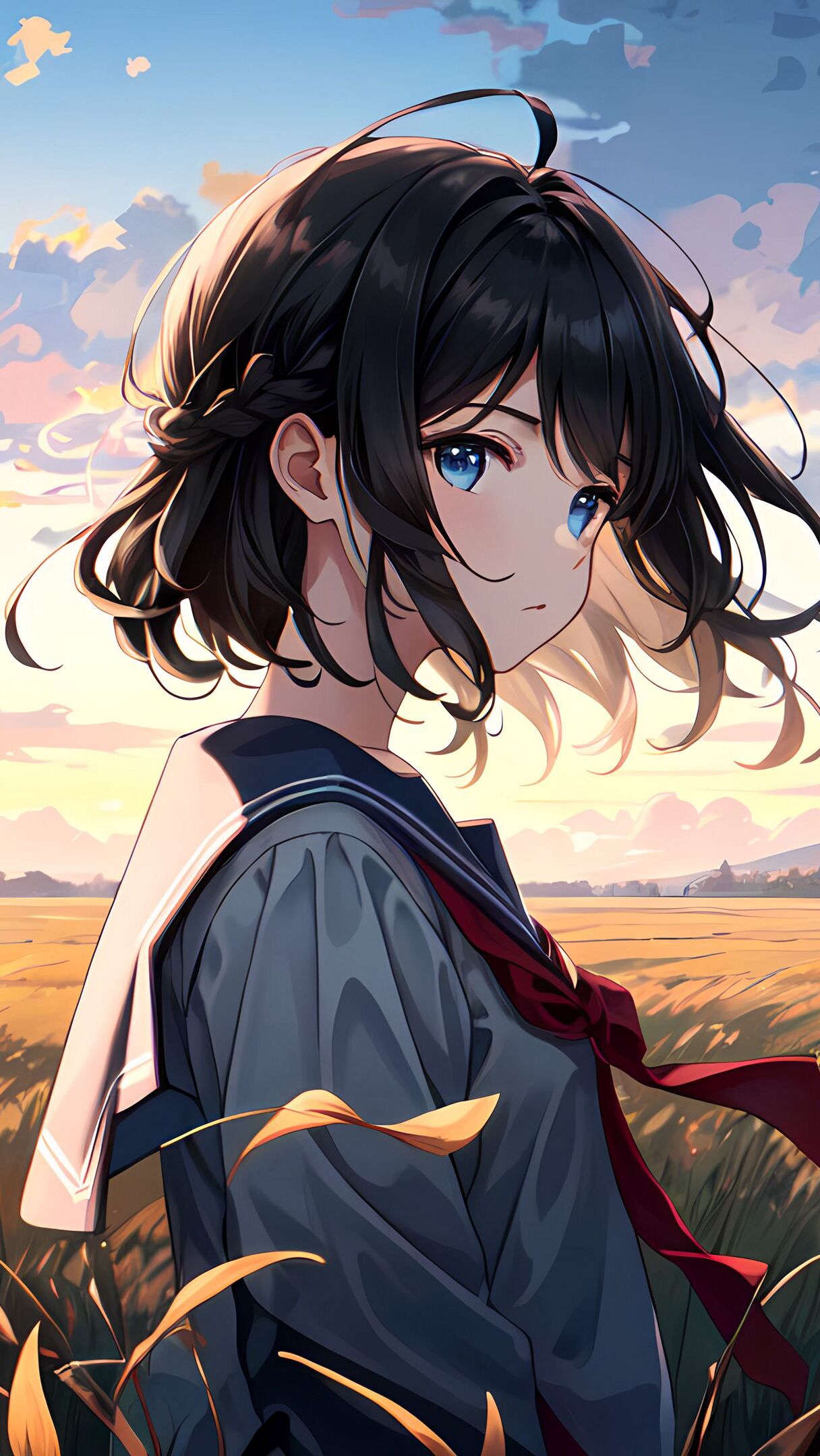 Edytor tapety: Dziewczyna w mundurku szkolnym na polu