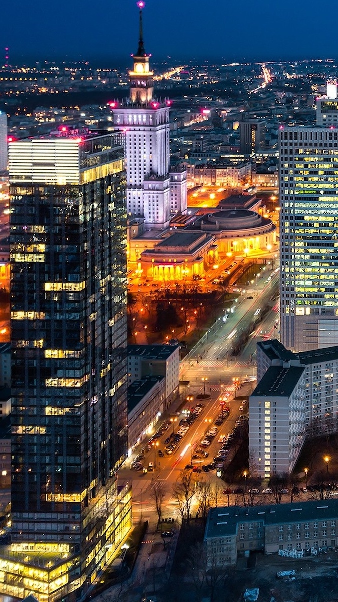 Edytor tapety: Widok z góry na Warszawę nocą