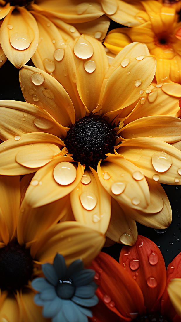 Edytor tapety: Kolorowe kwiaty z kroplami wody