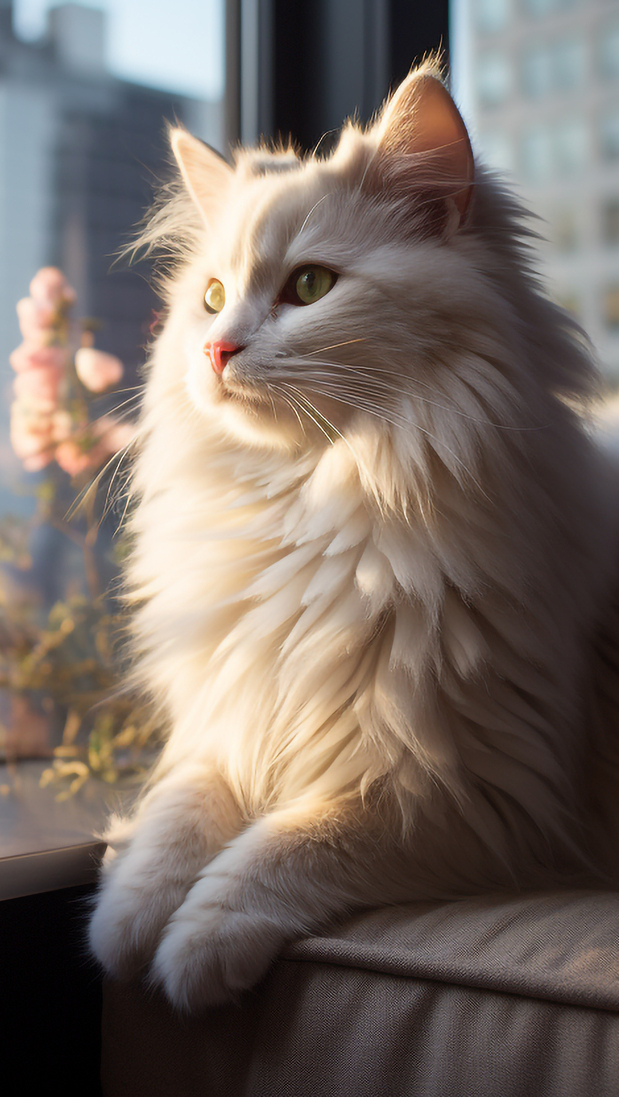 Edytor tapety: Biaty kot na parapecie okna