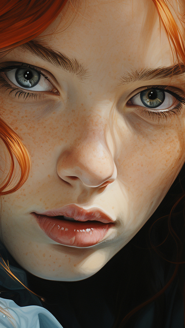Edytor tapety: Twarz rudowłosej piegowatej dziewczyny w zbliżeniu