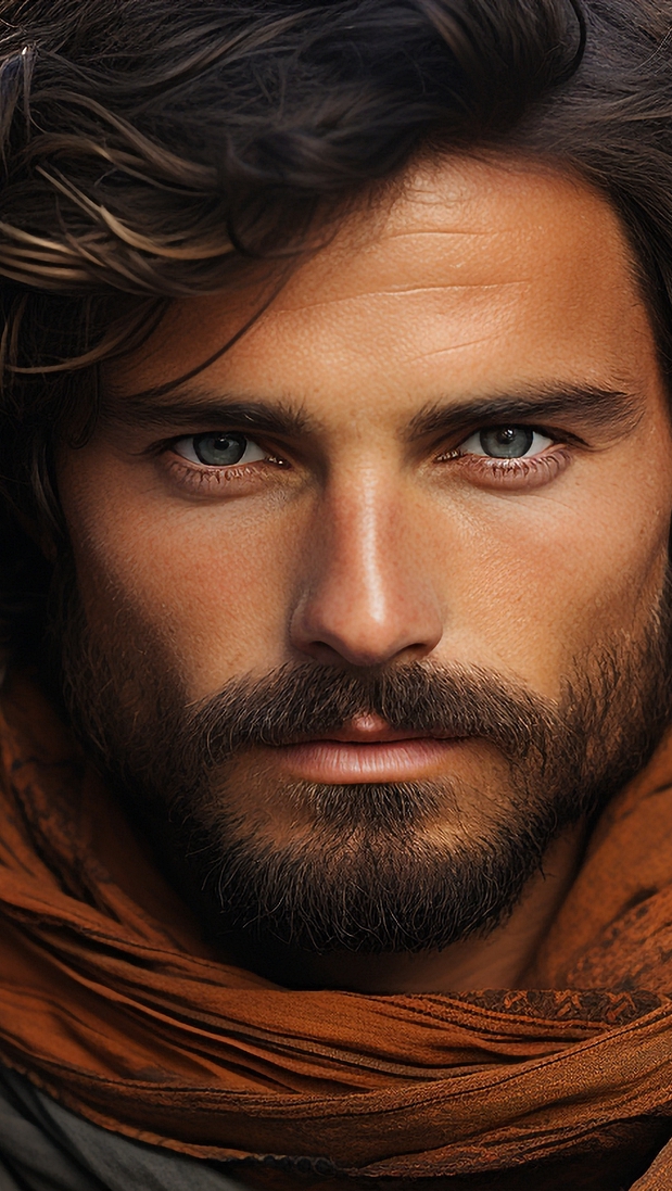 Edytor tapety: Mężczyzna z zarostem otulony chustą