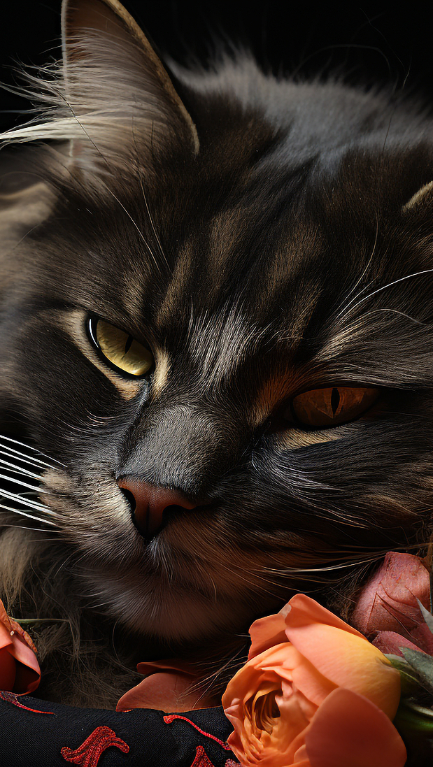Edytor tapety: Kot z pomarańczową różą