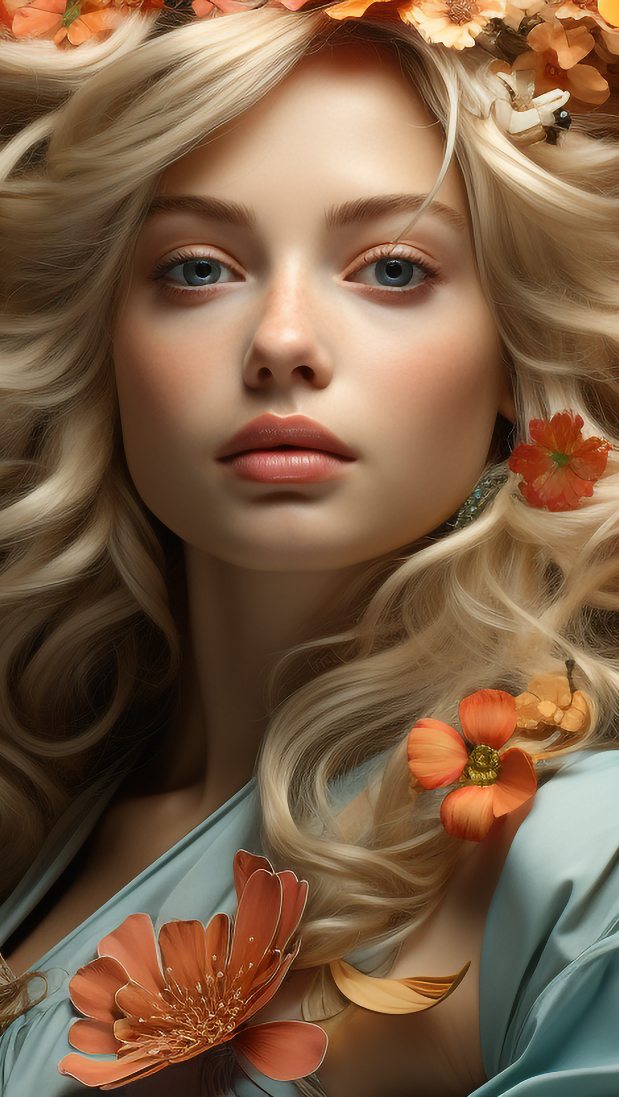 Edytor tapety: Blondynka z kwiatami we włosach