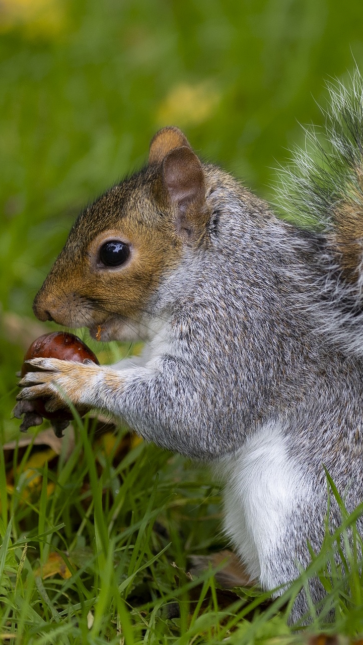 Edytor tapety: Wiewiórka z kasztanem na trawie