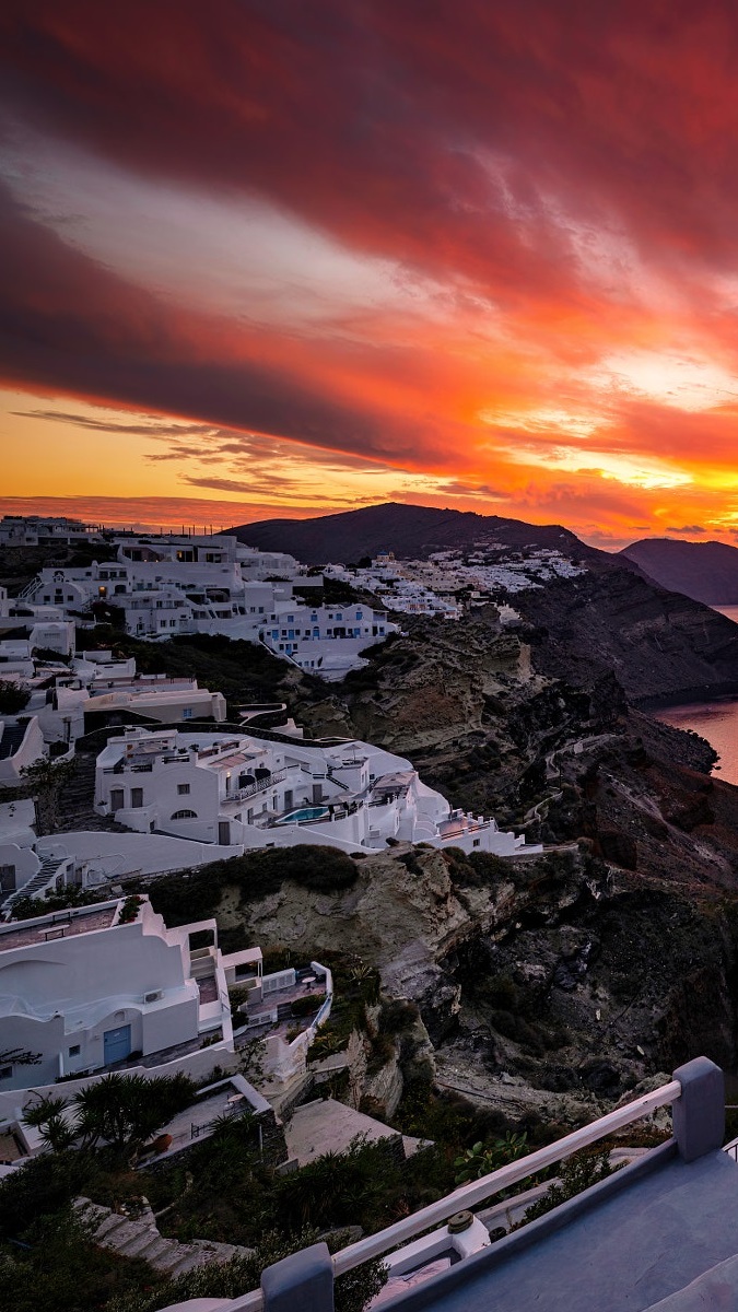 Edytor tapety: Santorini o zachodzie słońca