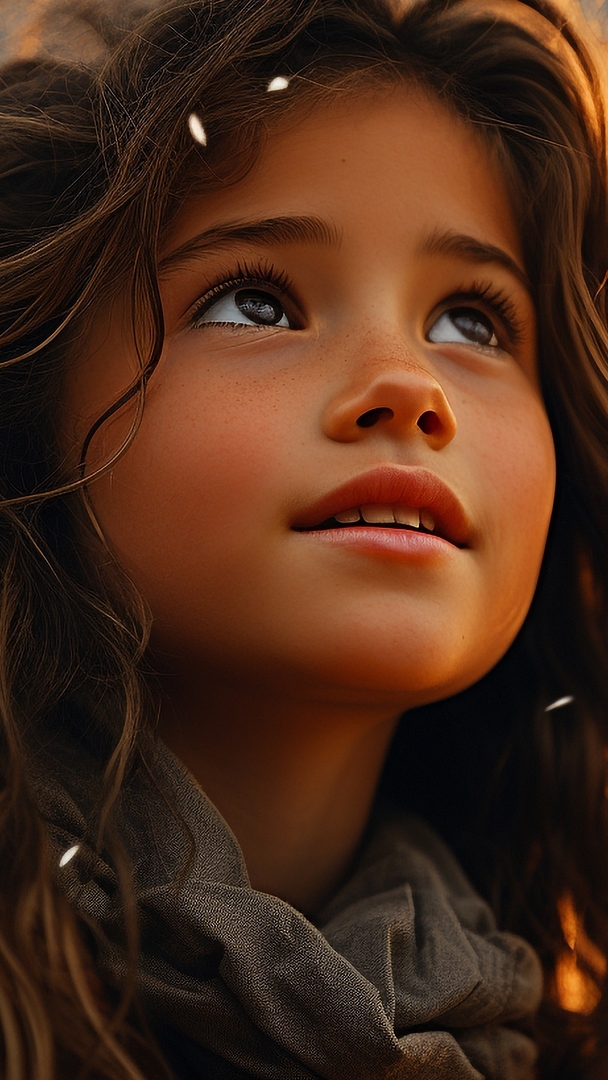 Edytor tapety: Spoglądająca do góry dziewczynka