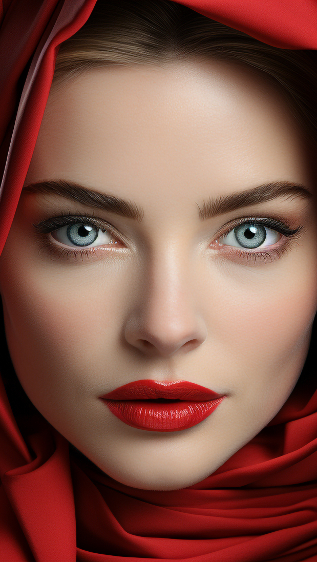 Edytor tapety: Kobieta otulona czerwoną chustą