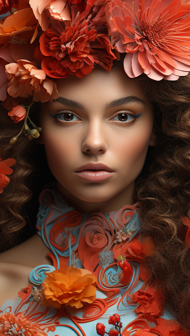 Edytor tapety: Kwiaty na głowie kobiety