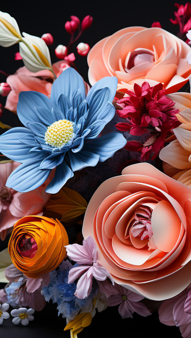 Edytor tapety: Kolorowe kwiaty na czarnym tle