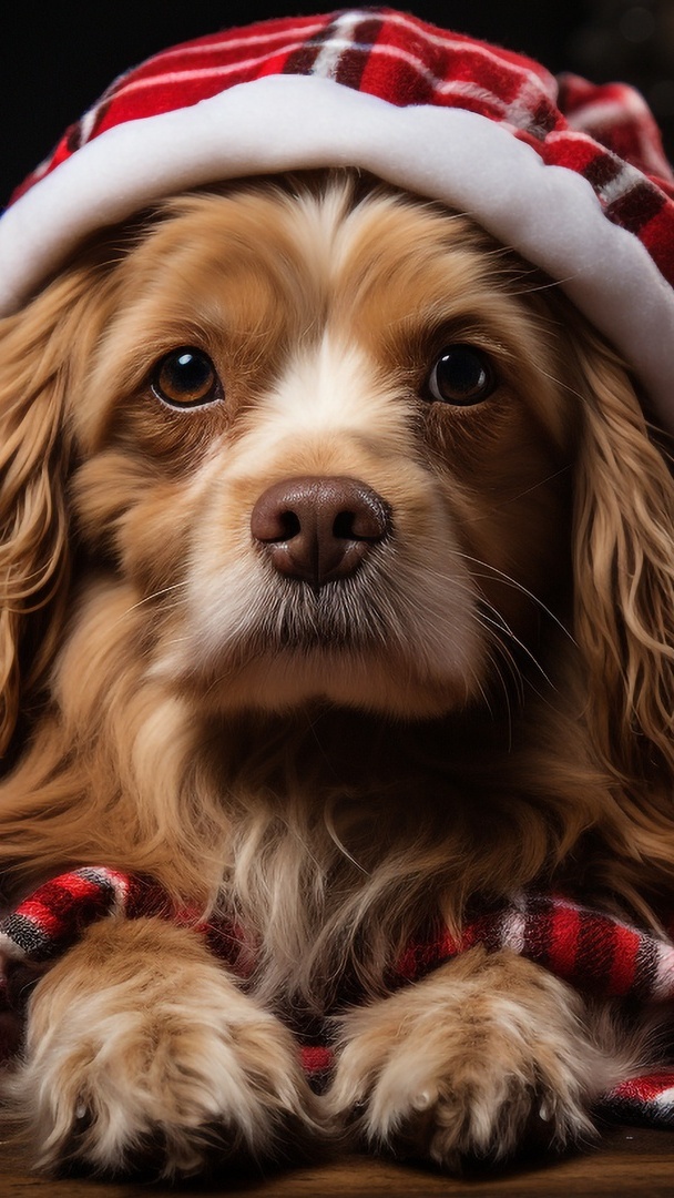 Edytor tapety: Pies w czapce w kratkę