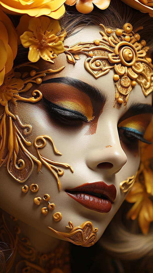 Edytor tapety: Kobieta ze złotą ozdobą na twarzy