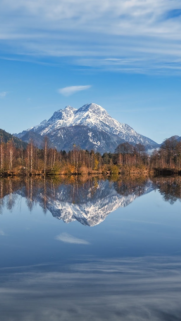 Edytor tapety: Odbicie ośnieżonej góry w jeziorze