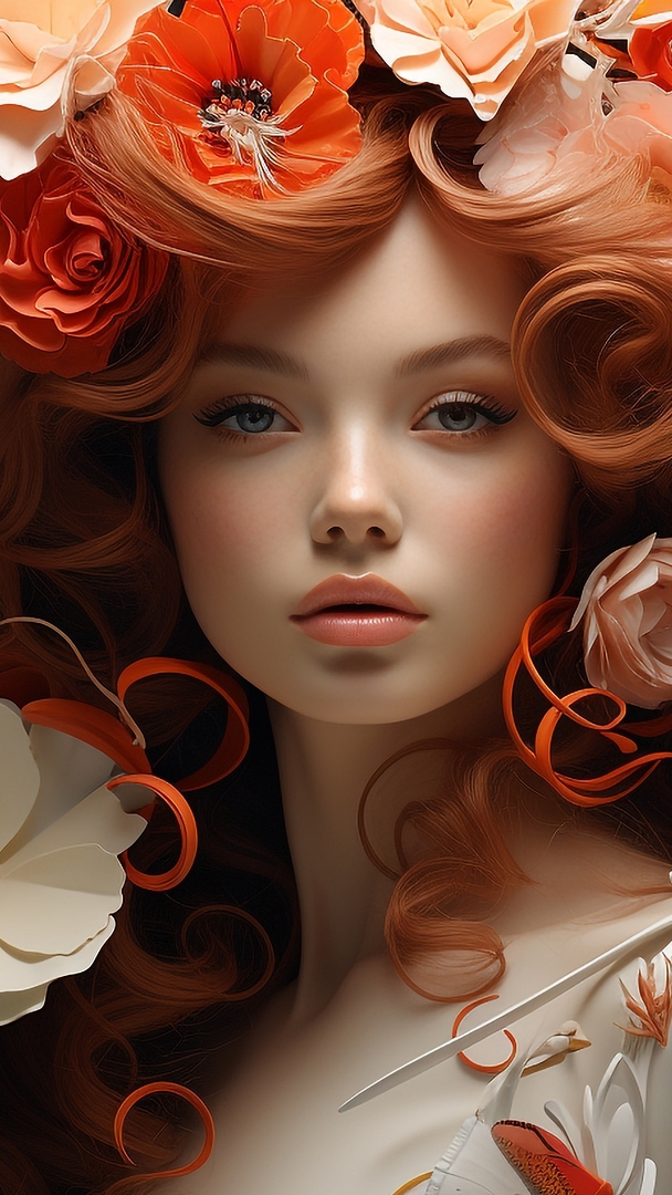 Edytor tapety: Kobieta z kwiatami we włosach