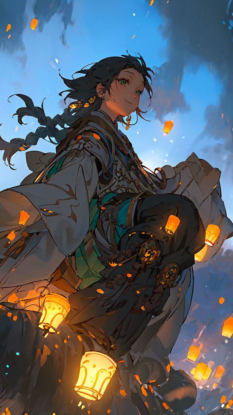 Edytor tapety: Dziewczyna wśród lampionów w anime
