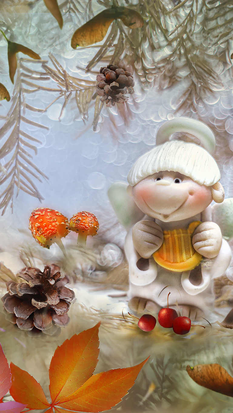 Edytor tapety: Figurka aniołka w jesiennej kompozycji