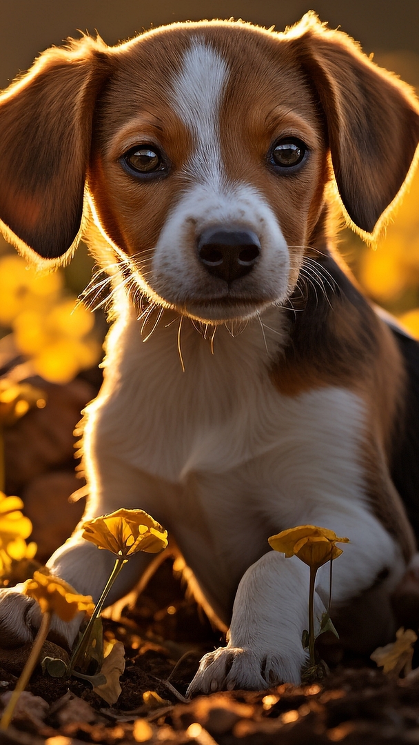 Edytor tapety: Słodki szczeniak w żółtych kwiatach