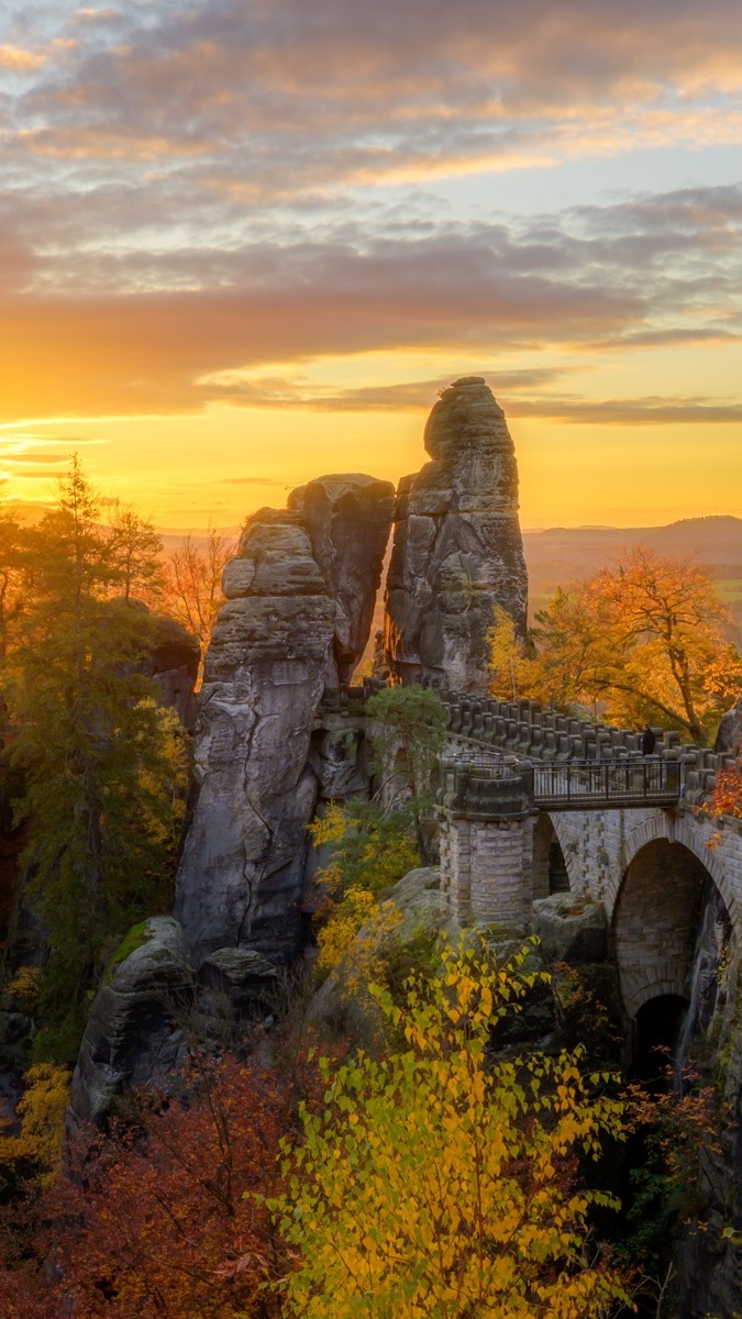 Edytor tapety: Formacja skalna Bastei w jesiennej scenerii