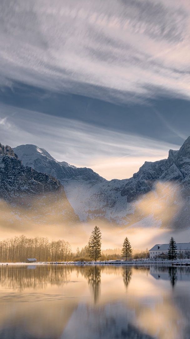 Edytor tapety: Górskie jezioro Almsee zimową porą