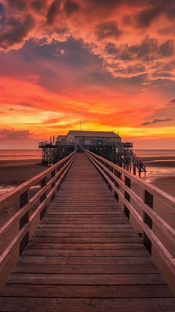 Edytor tapety: Kolorowe niebo nad drewnianym molem
