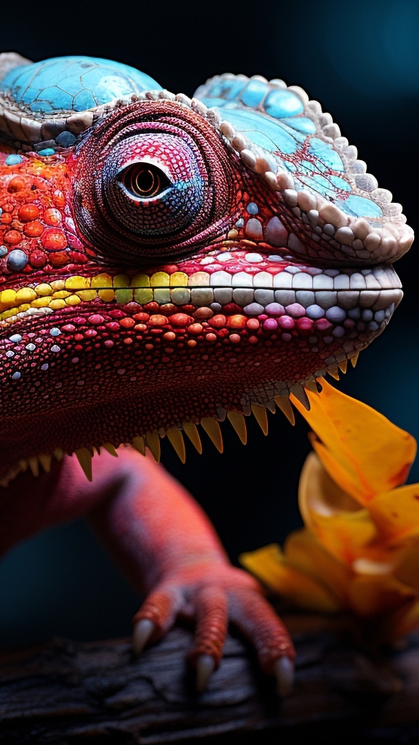 Edytor tapety: Głowa kolorowego kameleona w zbliżeniu
