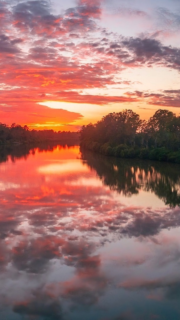 Edytor tapety: Drzewa nad jeziorem o poranku