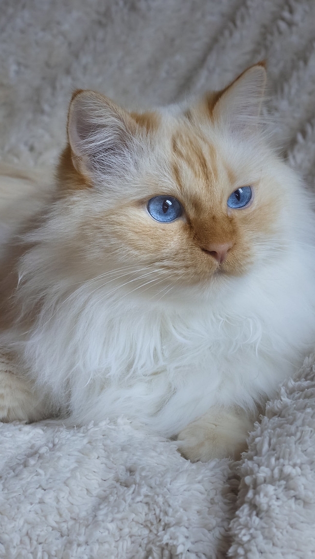 Edytor tapety: Niebieskooki kot na kocu
