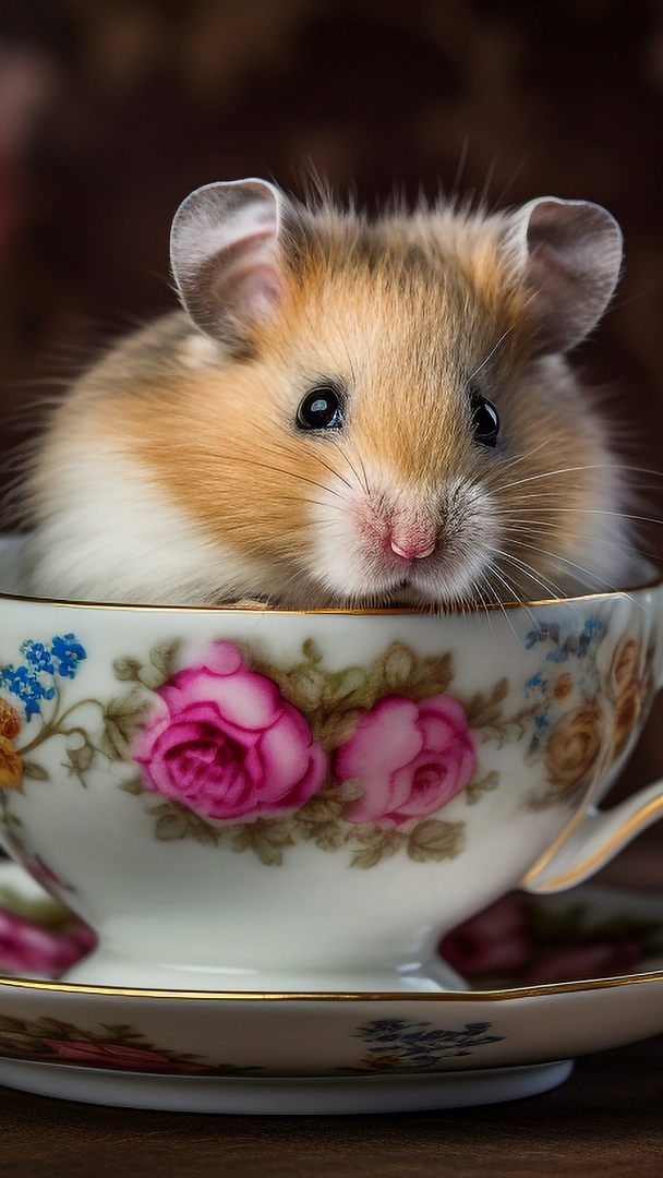 Edytor tapety: Chomik w porcelanowej filiżance