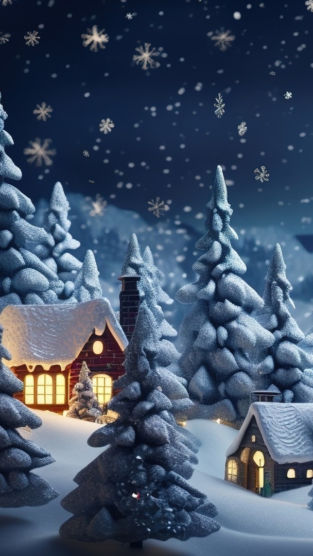 Edytor tapety: Domki wśród ośnieżonych drzew