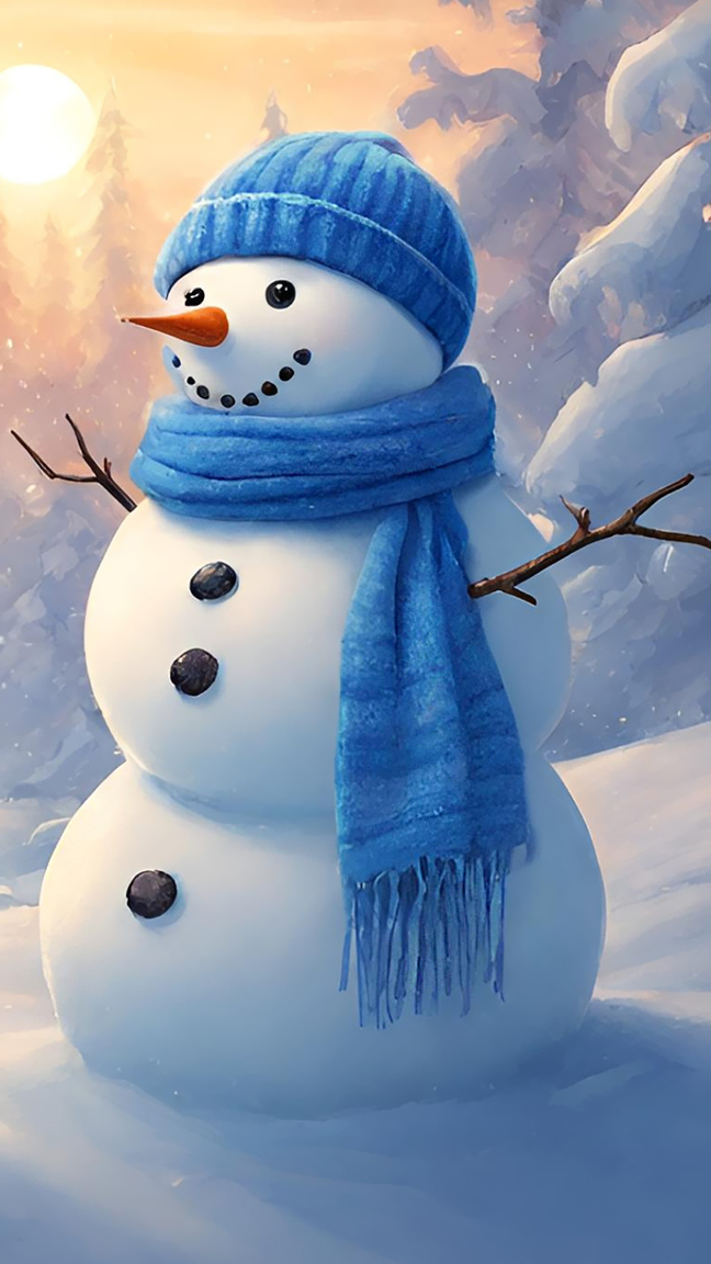 Edytor tapety: Bałwanek w niebieskiej czapce i szaliku