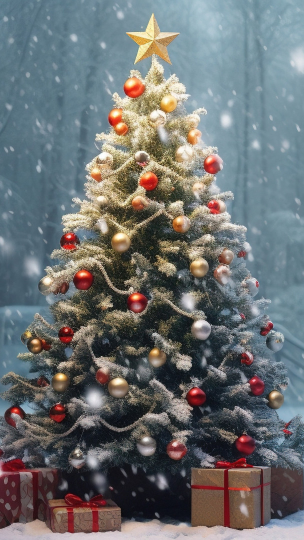 Edytor tapety: Choinka i prezenty na śniegu