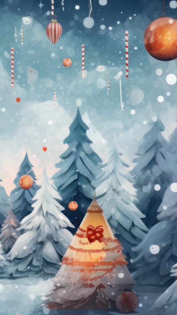 Edytor tapety: Choinki i wiszące bombki w grafice