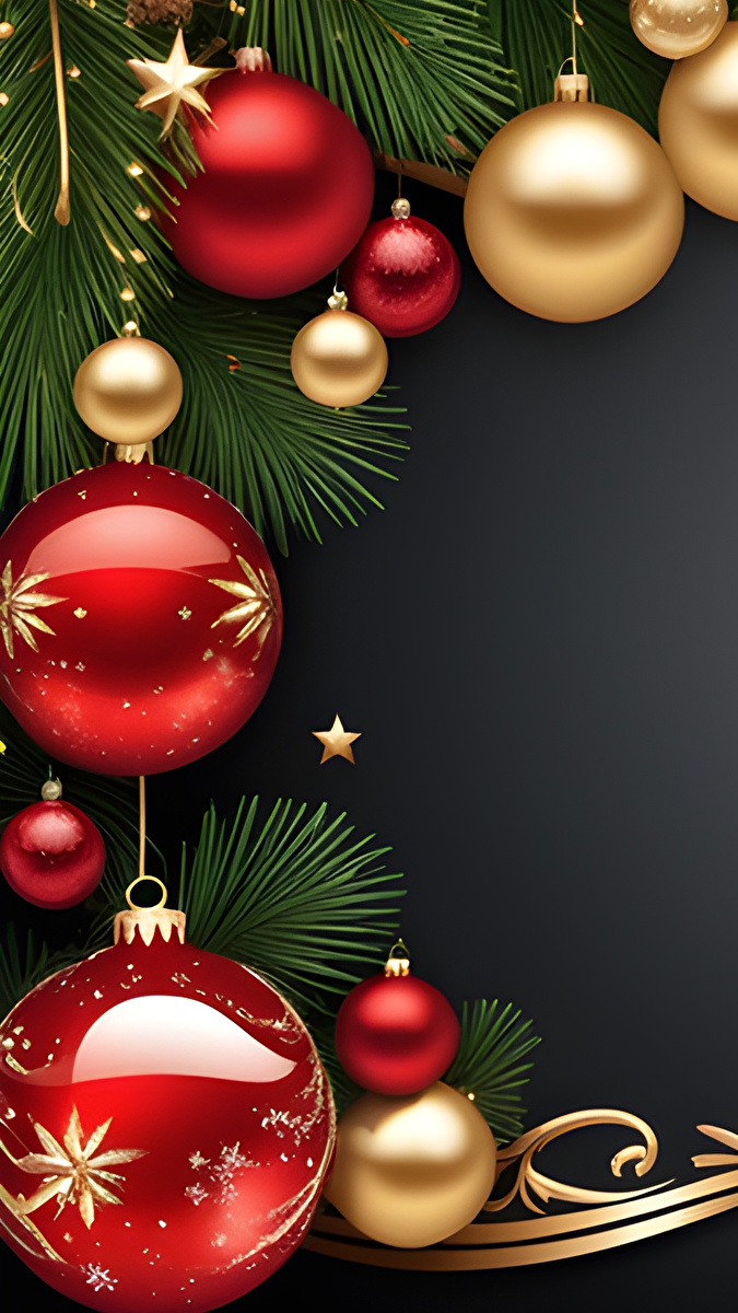Edytor tapety: Złote i czerwone bombki na gałązkach