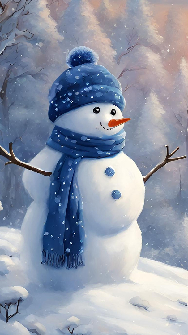 Edytor tapety: Bałwanek na tle ośnieżonych drzew