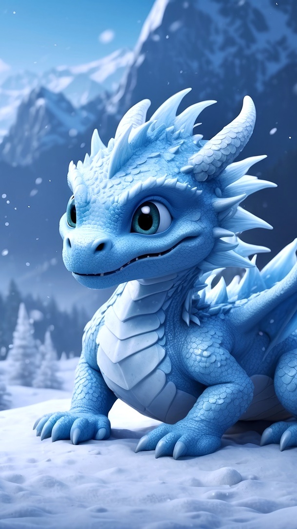 Edytor tapety: Niebieski smok na śniegu
