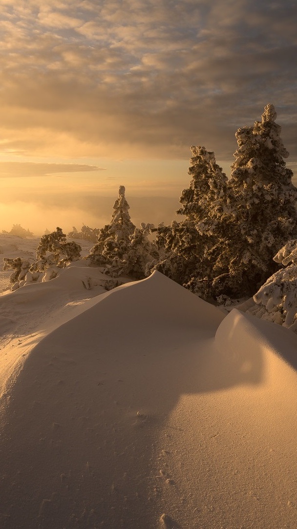 Edytor tapety: Ośnieżone drzewa i zaspy w słońcu